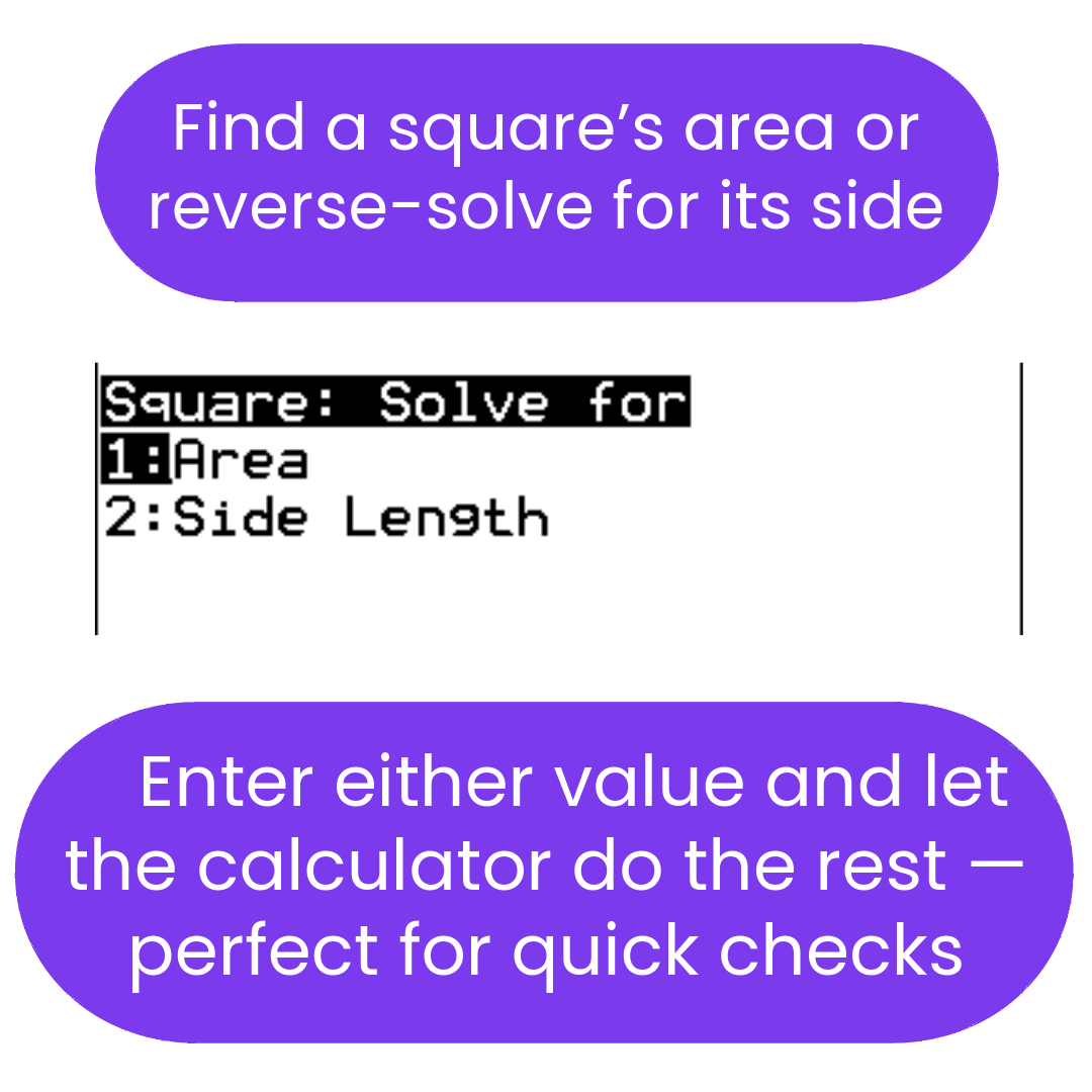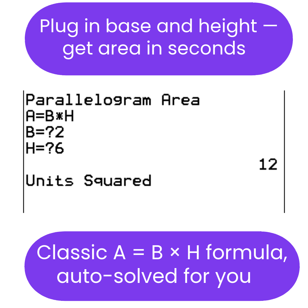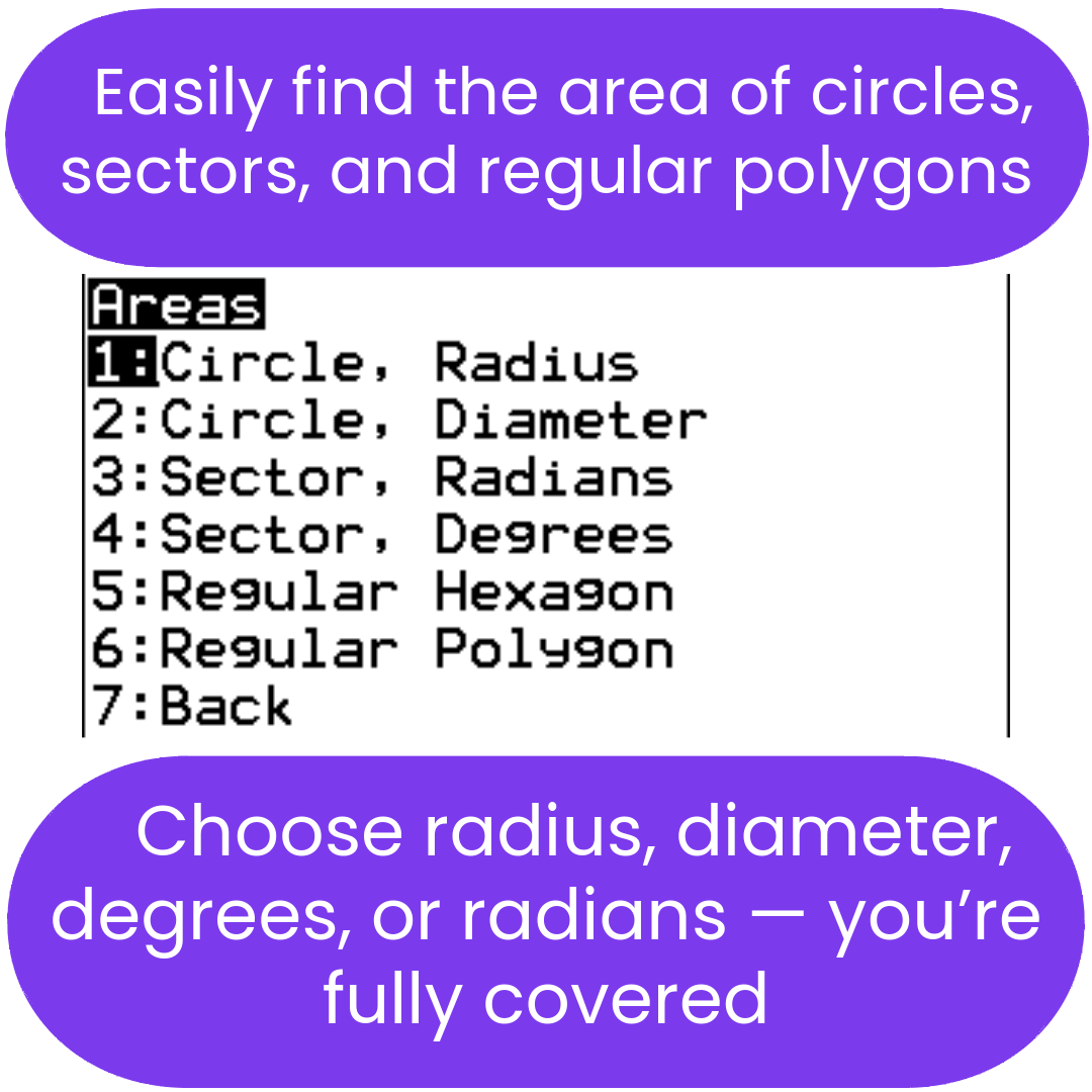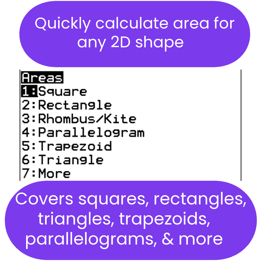 Area (2-dimensional figures) Solver TI-84 Plus CE Calculator Program