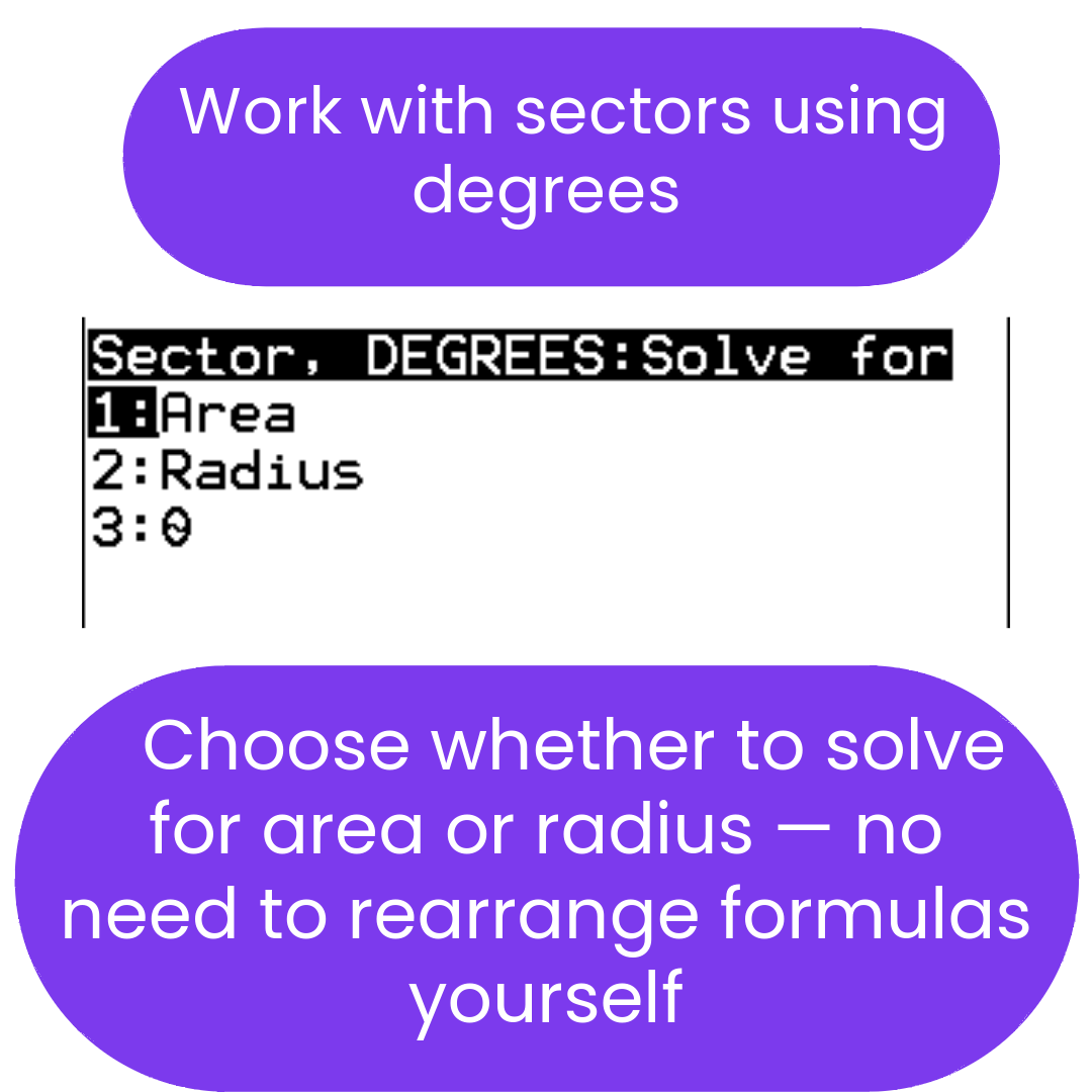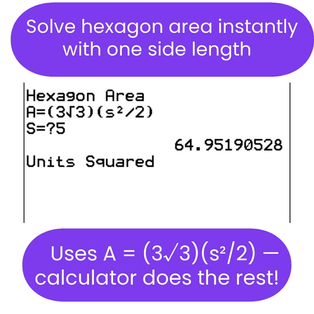 Now you can quickly and accurately solve for the areas of squares, rectangles, rhombi/kites, parallelograms, trapezoids, triangles, circles, sectors, regular hexagons, or regular polygons. Also, you can solve for the missing variable. If you need to show work, the program shows you the formula for both the area and the missing variable.