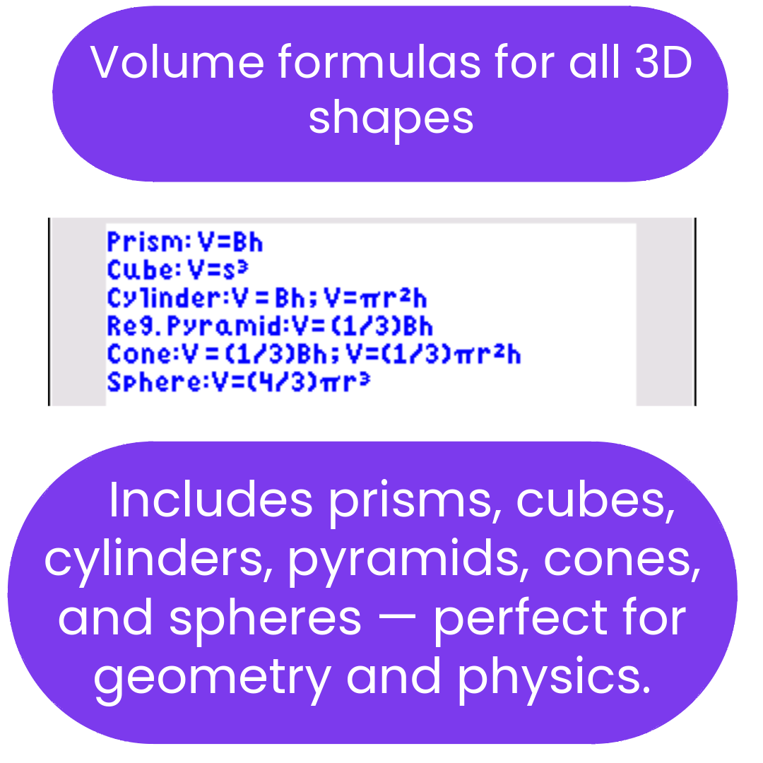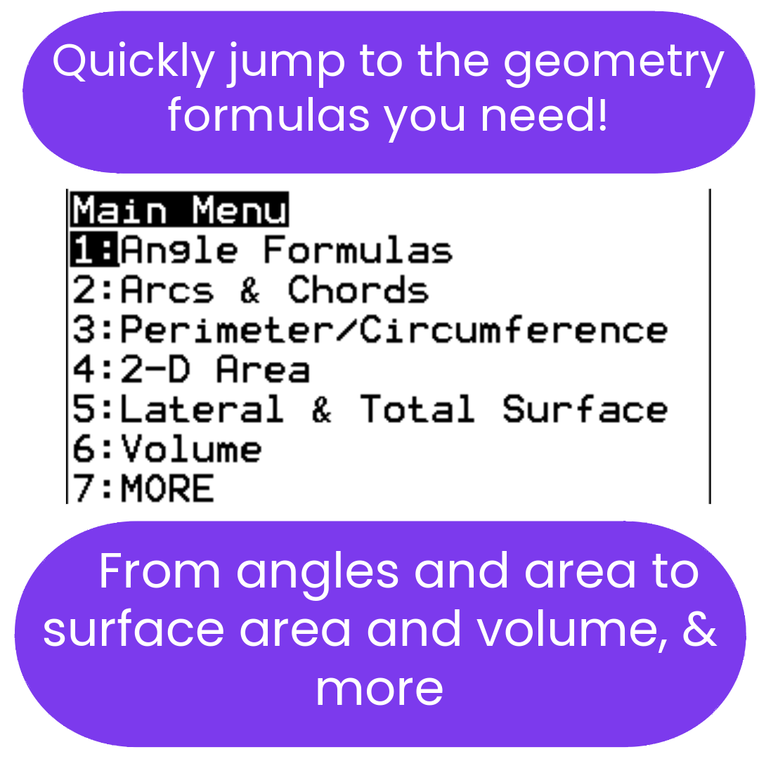 📐 GEOFORM: Geometry Formulas for your TI-84 Plus CE or CE Python calculator!