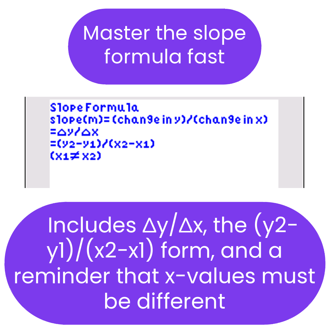 • Coordinate Geometry (slope formula, linear equations, circle equations)