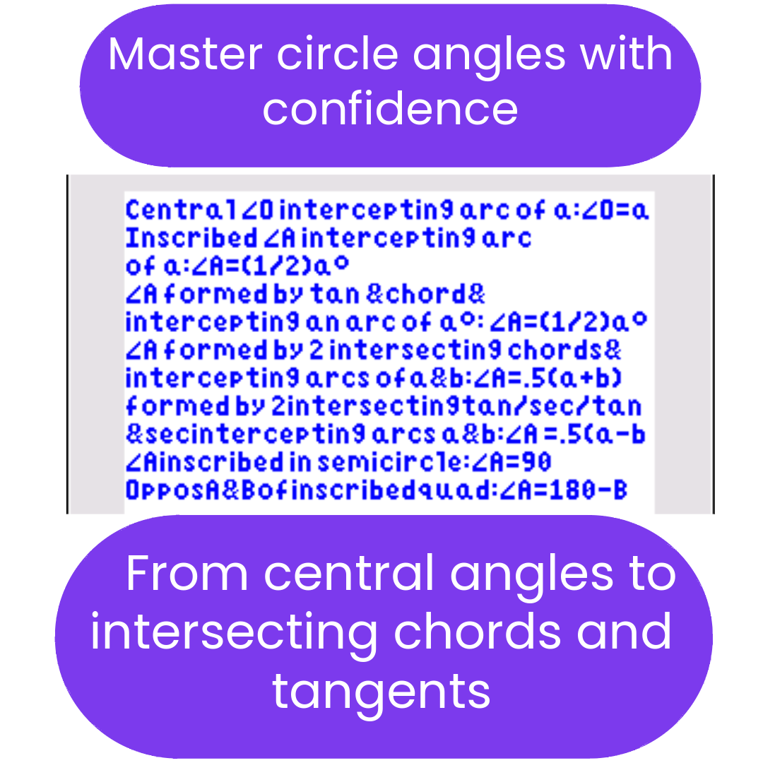 • Circle Angles (central, inscribed, chords, tangents, and secants)