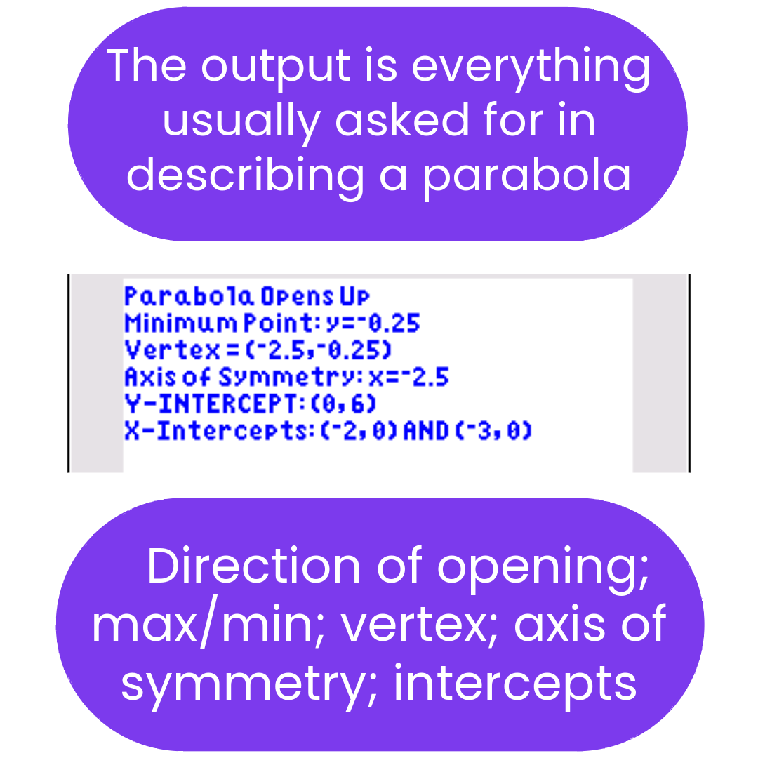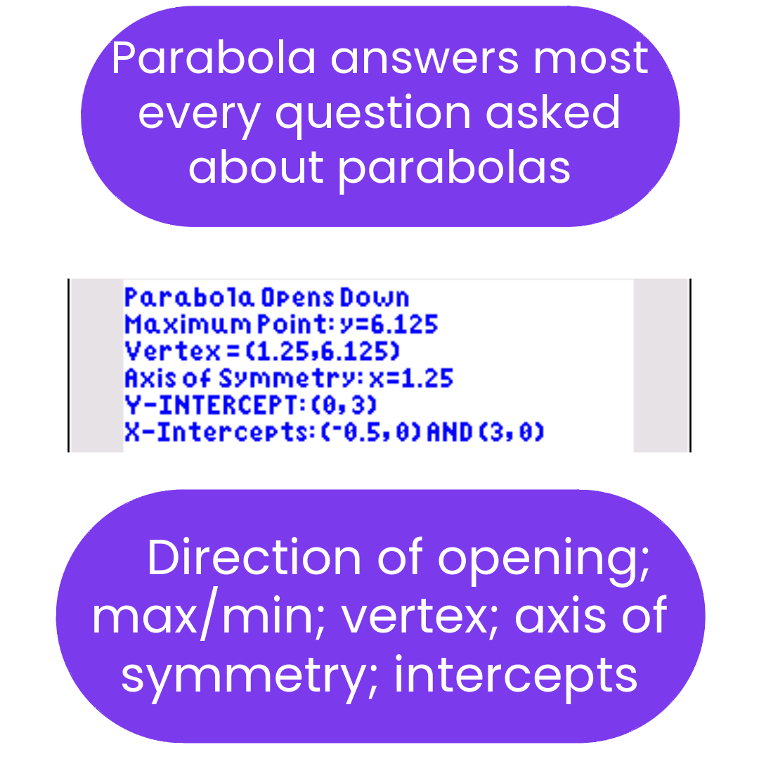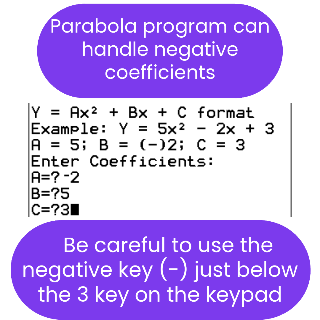 Struggling with quadratic equations in the form y = Ax² + Bx + C? This TI-84 Plus CE program takes the guesswork out of parabola problems and gives you everything you need: