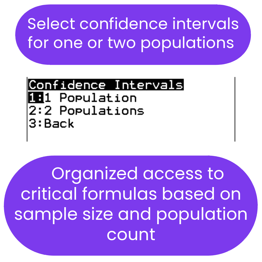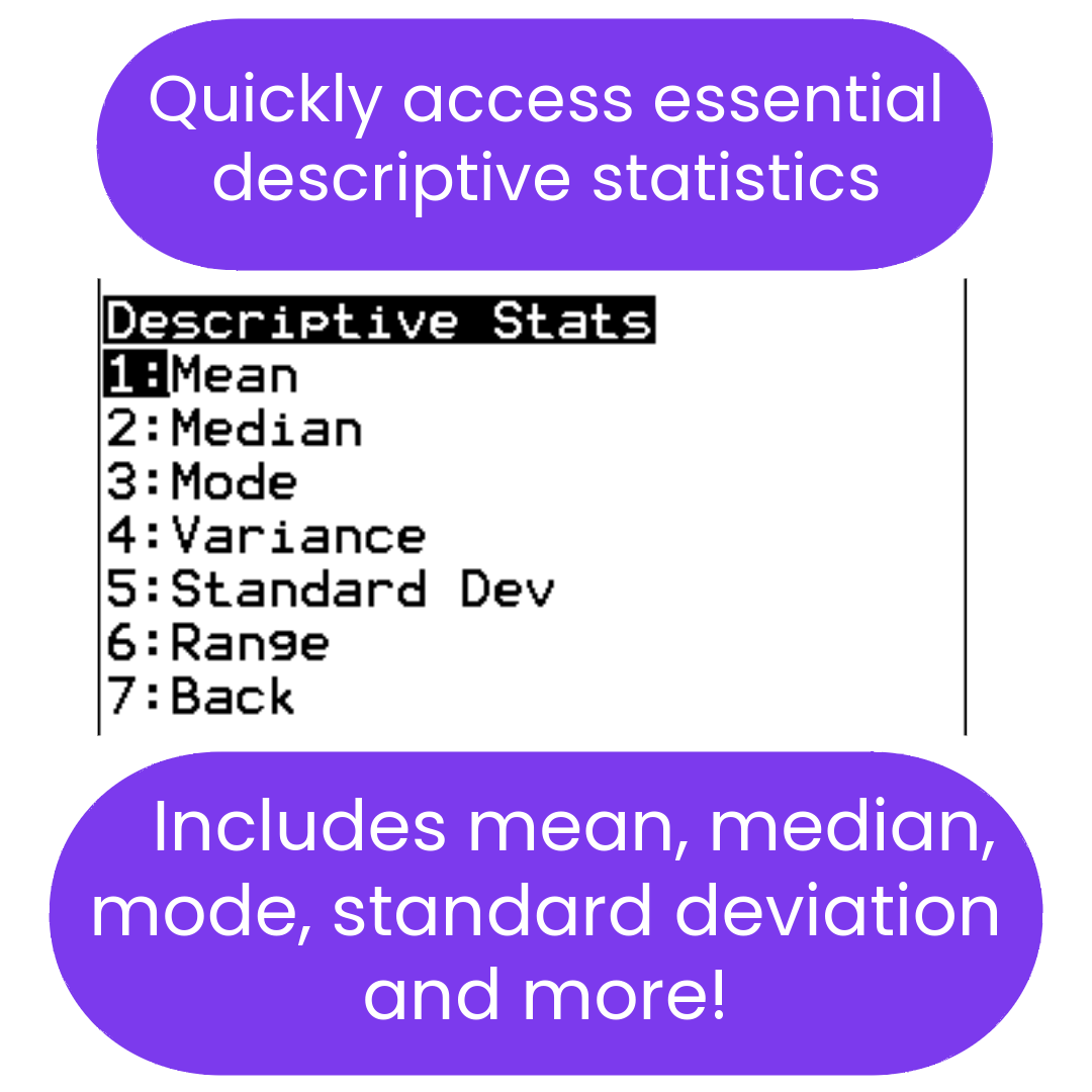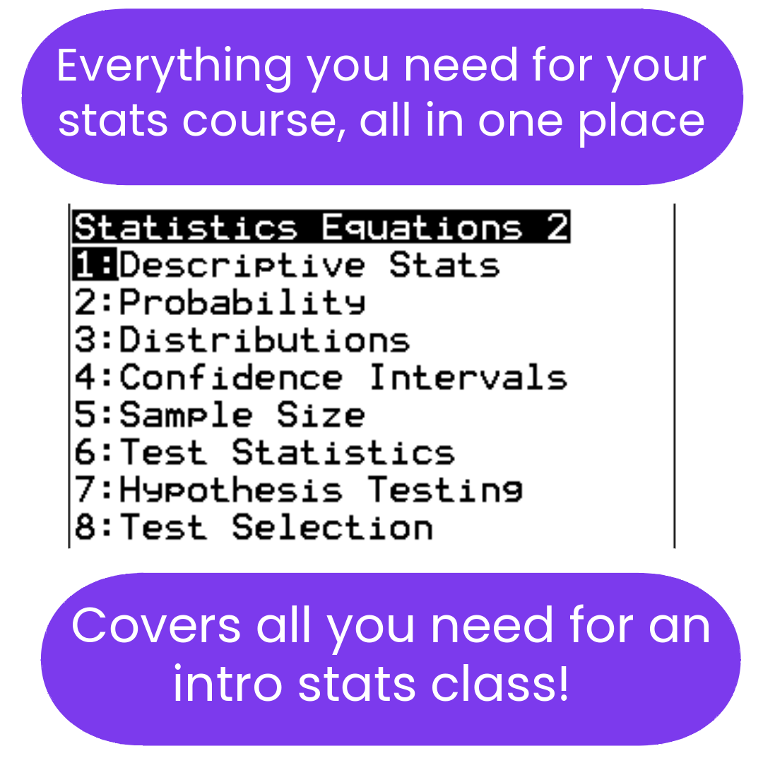 Say goodbye to flipping through textbooks and Googling formulas. With Statistics Equations 2, you’ll have all the key statistical equations right on your TI-84 calculator, neatly organized and easy to access.