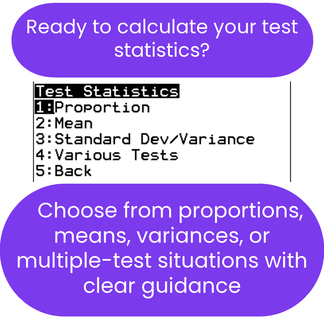 Disclaimer: This calculator program is designed to help you work through statistics equations more efficiently. It does not guarantee a particular AP score or grade—it’s a study aid, not a replacement for your own review and practice.